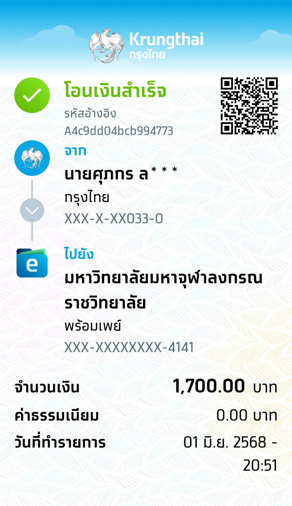 QR Code สำหรับสแกนเข้าร่วมพิธี * เข้าพิธีประสาทปริญญาวันที่ 6 ธันวาคม 2568 |