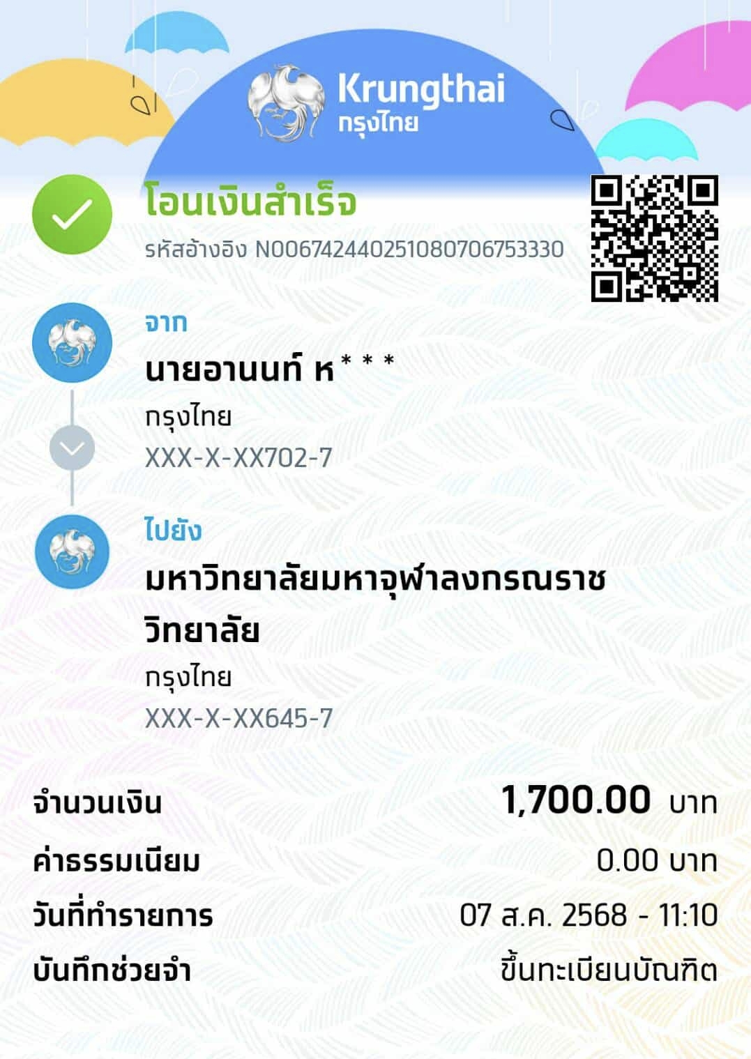 QR Code สำหรับสแกนเข้าร่วมพิธี * เข้าพิธีประสาทปริญญาวันที่ 6 ธันวาคม 2568 |
