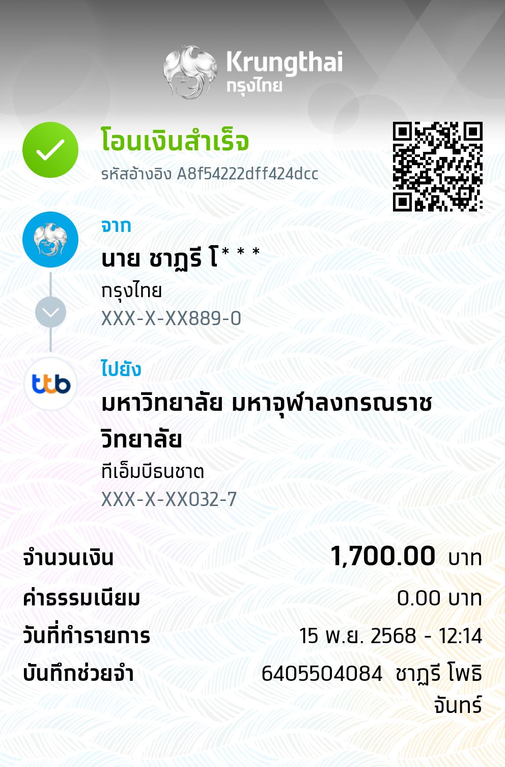 QR Code สำหรับสแกนเข้าร่วมพิธี * เข้าพิธีประสาทปริญญาวันที่ 6 ธันวาคม 2568 |