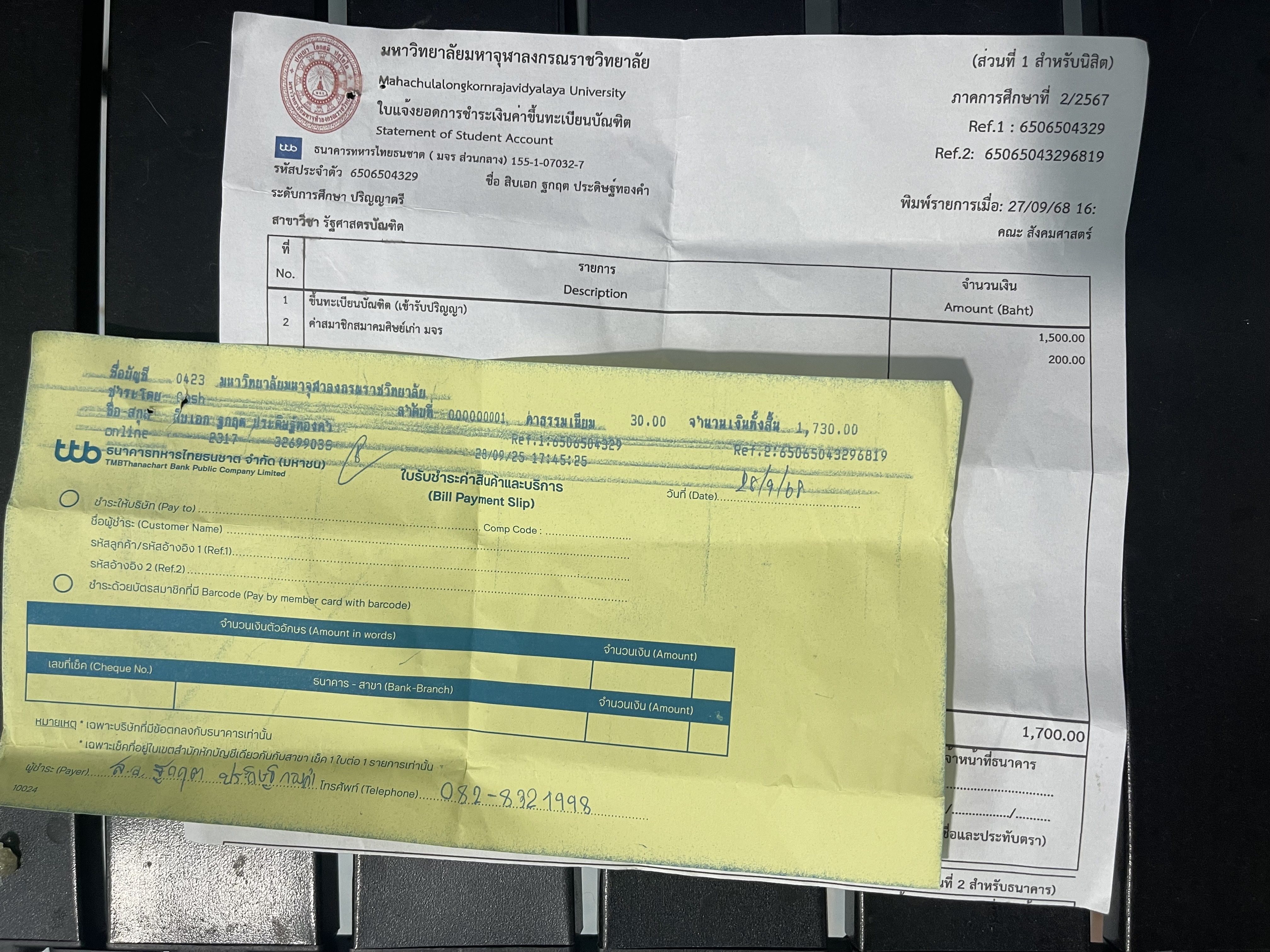 ใบเสร็จรับเงิน/เอกสารยืนยันการชำระเงิน(แนบเอกสาร)