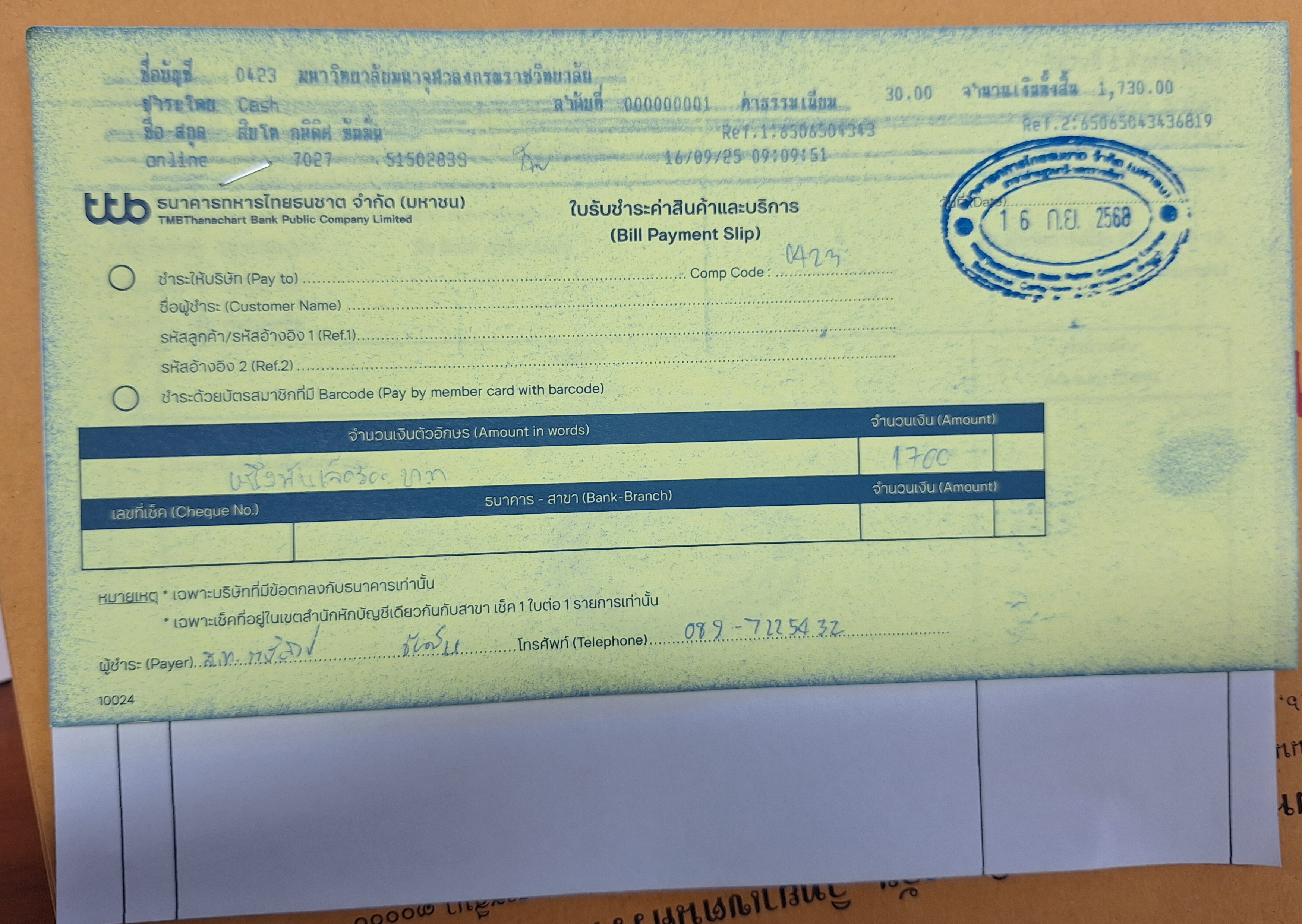 ใบเสร็จรับเงิน/เอกสารยืนยันการชำระเงิน(แนบเอกสาร)