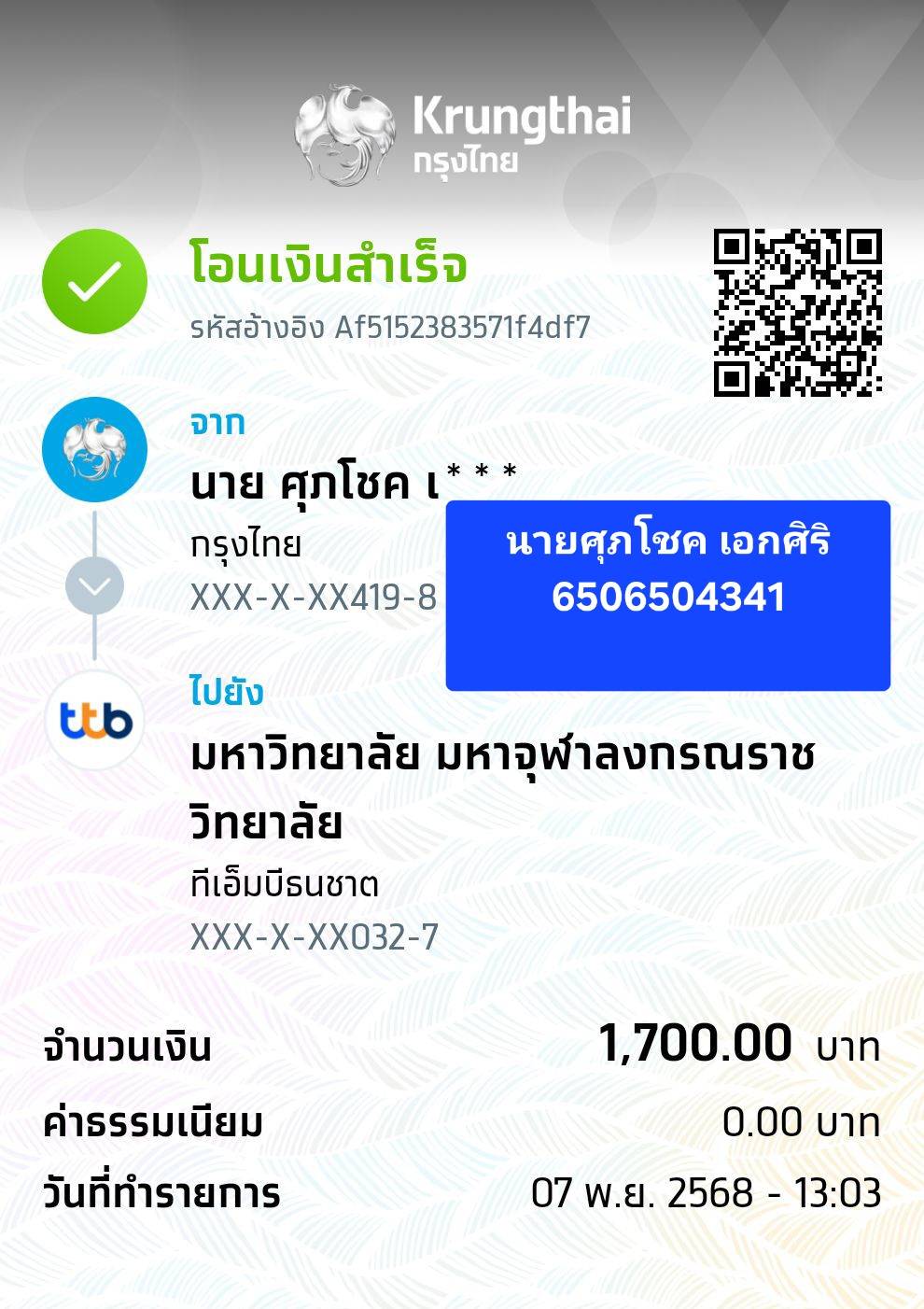 QR Code สำหรับสแกนเข้าร่วมพิธี