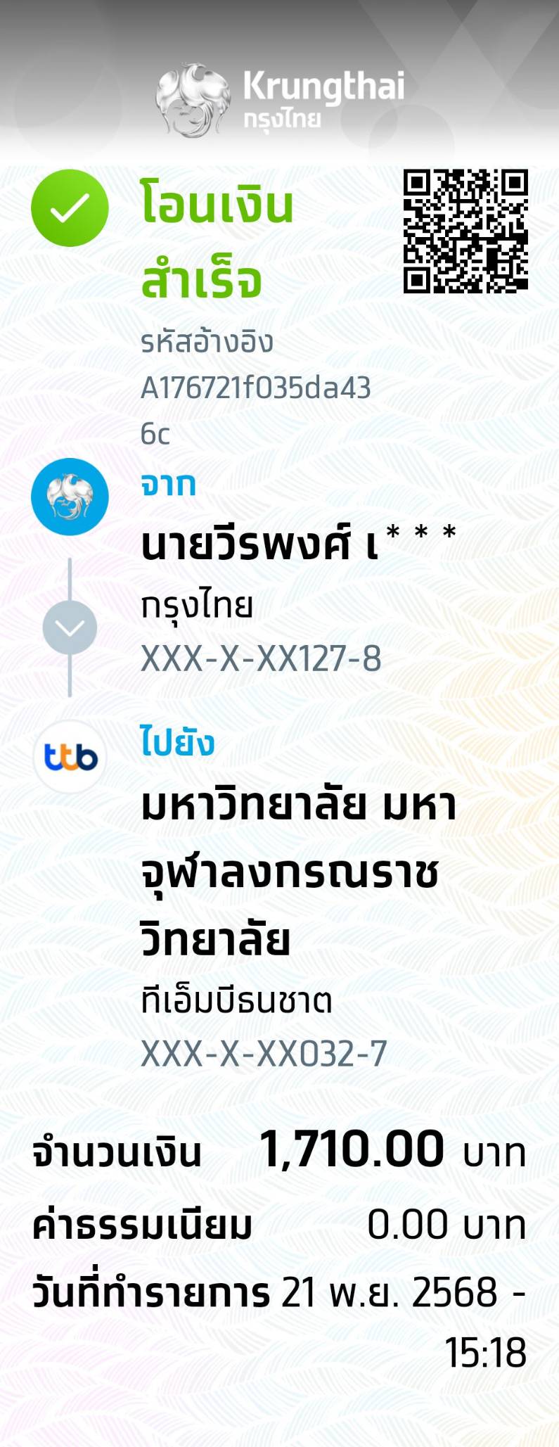 QR Code สำหรับสแกนเข้าร่วมพิธี * เข้าพิธีประสาทปริญญาวันที่ 6 ธันวาคม 2568 |