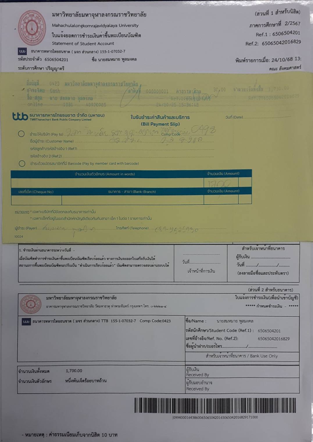 | รหัสนิสิต : 6506504201 | ชื่อ : นายสมหมาย | ฉายา: - | นามสกุล: พูลมงคล |