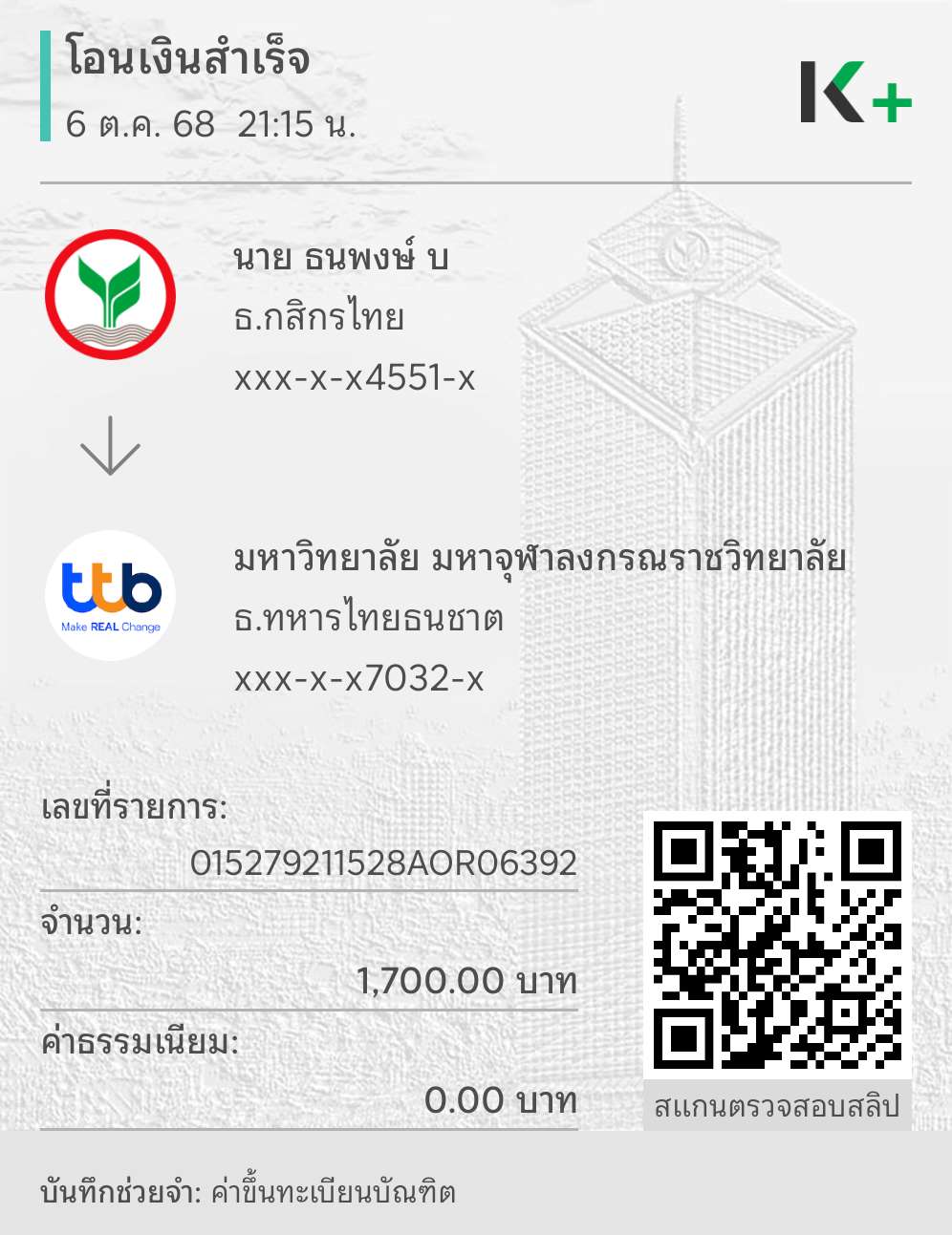QR Code สำหรับสแกนเข้าร่วมพิธี * เข้าพิธีประสาทปริญญาวันที่ 6 ธันวาคม 2568 |
