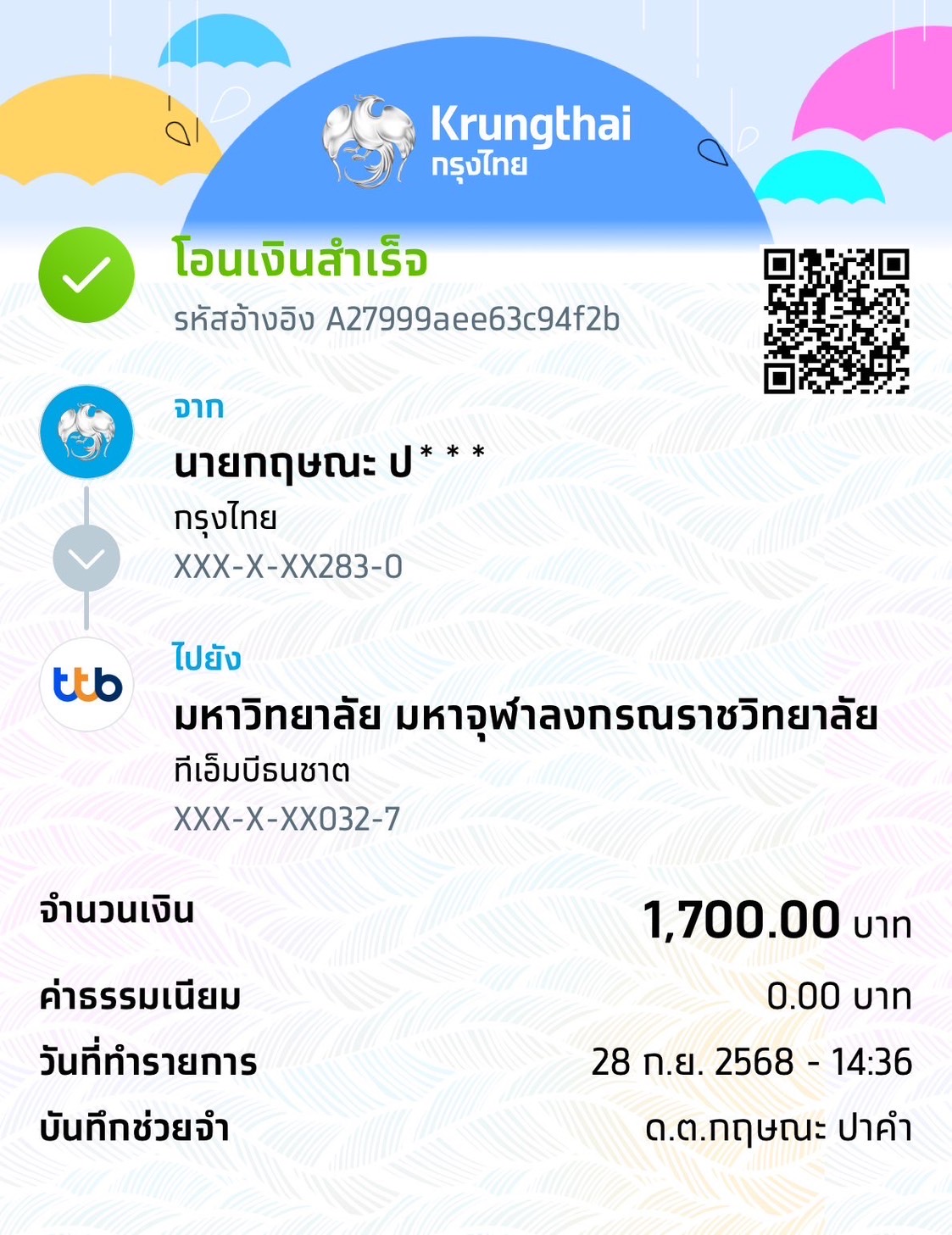 QR Code สำหรับสแกนเข้าร่วมพิธี * เข้าพิธีประสาทปริญญาวันที่ 6 ธันวาคม 2568 |