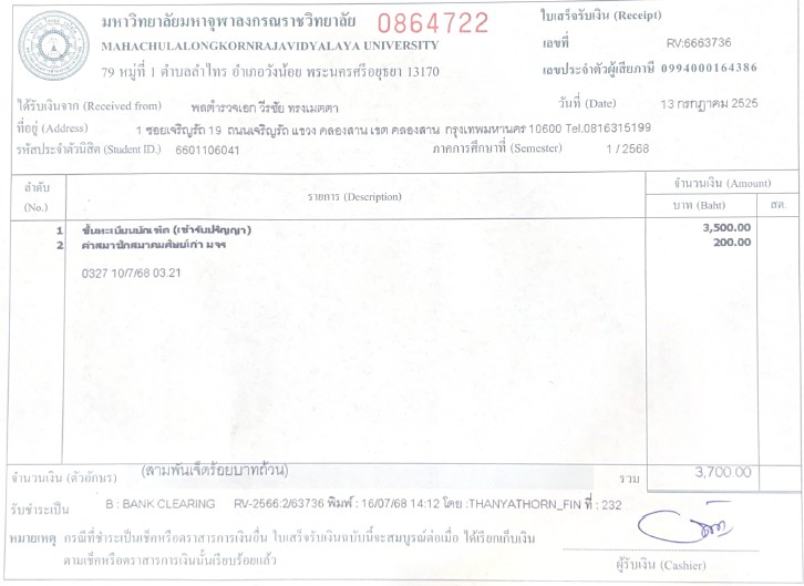 | รหัสนิสิต : 6601106041 | ชื่อ : Police General Wirachai | ฉายา: - | นามสกุล: Songmetta |