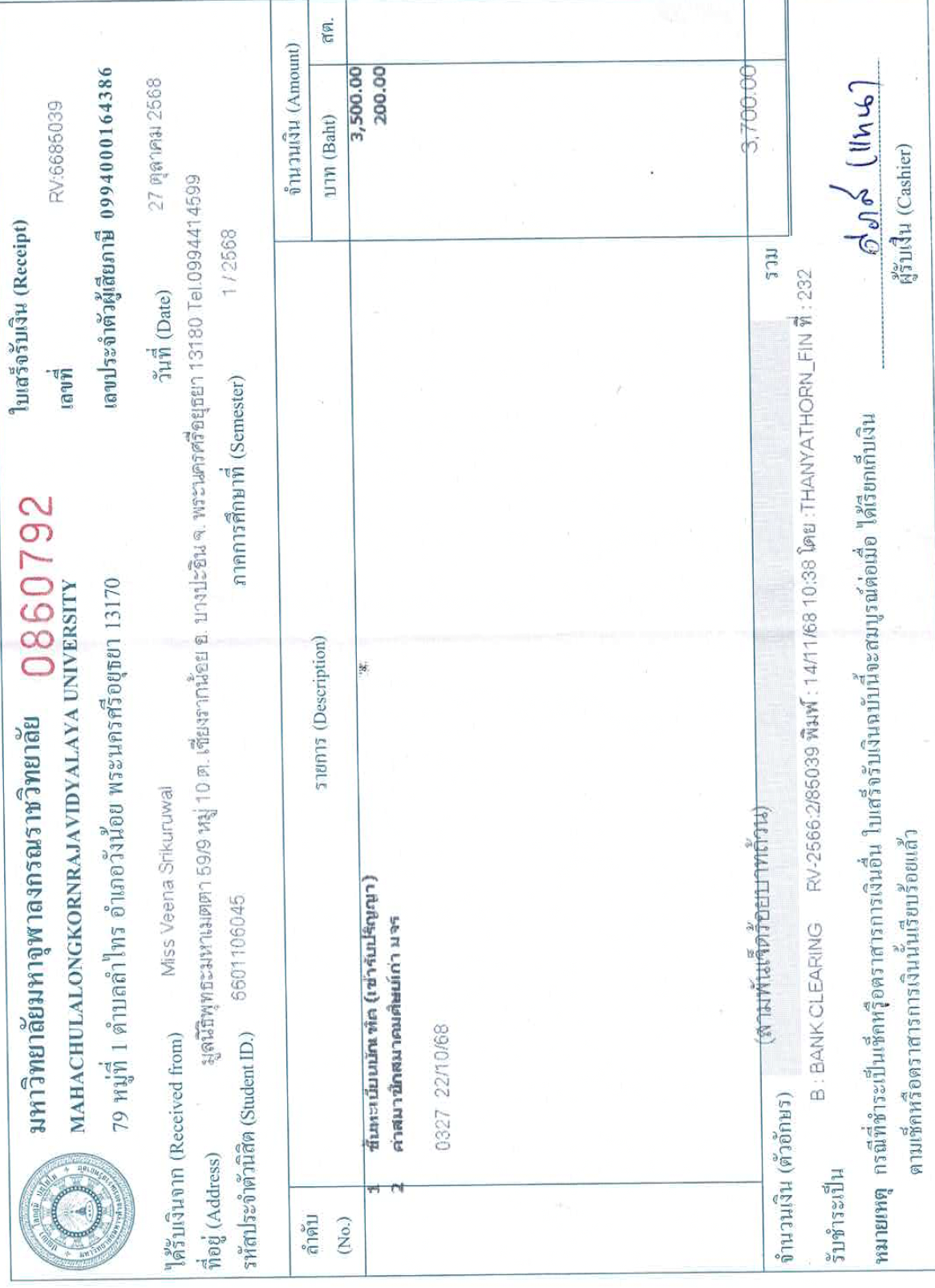 | รหัสนิสิต : 6601106045 | ชื่อ : Miss Veena | ฉายา: - | นามสกุล: Srikuruwal |