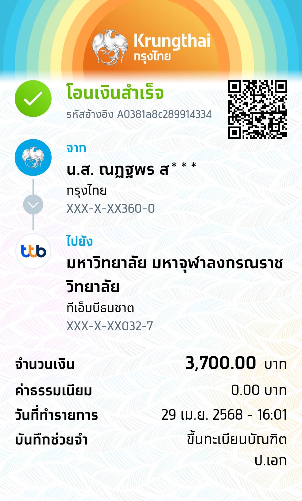 QR Code สำหรับสแกนเข้าร่วมพิธี * เข้าพิธีประสาทปริญญาวันที่ 7 ธันวาคม 2568 |
