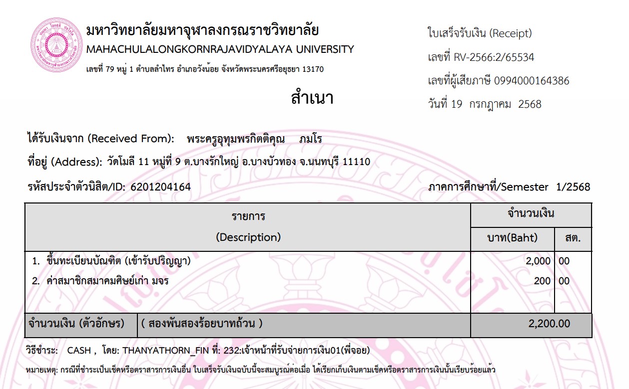 | สถานะเข้าพิธีประสาทปริญญา : บรรพชิต | ระดับ : ปริญญาโท | สังกัดคณะ: บัณฑิตวิทยาลัย | สาขาวิชา: นิติศาสตรมหาบัณฑิต |