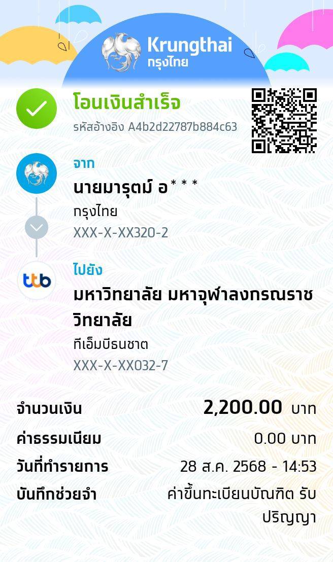 * เข้าพิธีประสาทปริญญาวันที่ 7 ธันวาคม 2568