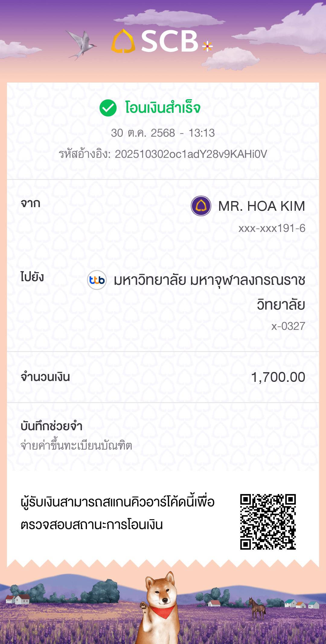 | รหัสนิสิต : 6401503016 | ชื่อ : Hoa Kim | ฉายา: - | นามสกุล: - |