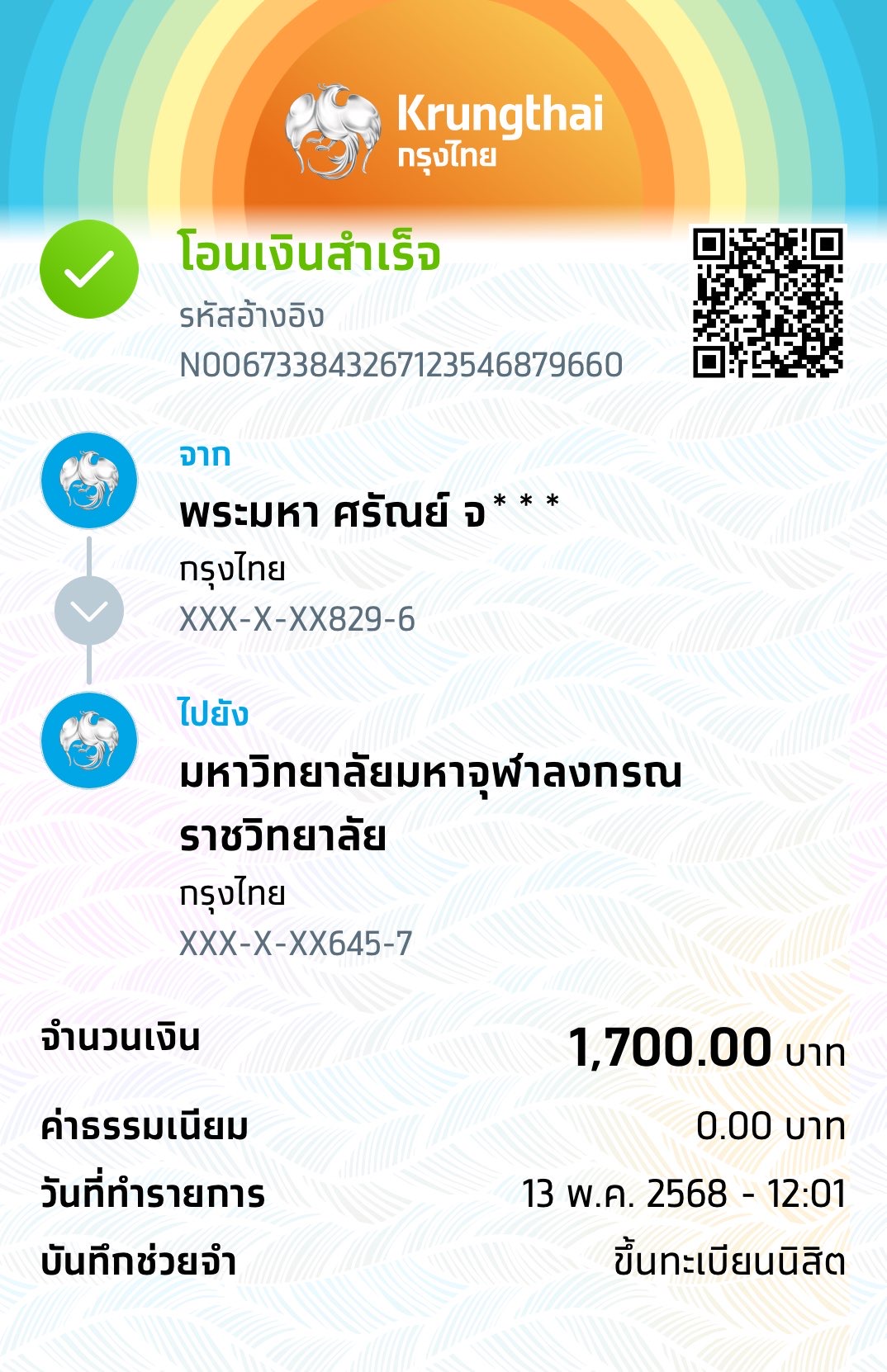 QR Code สำหรับสแกนเข้าร่วมพิธี * เข้าพิธีประสาทปริญญาวันที่ 6 ธันวาคม 2568 |