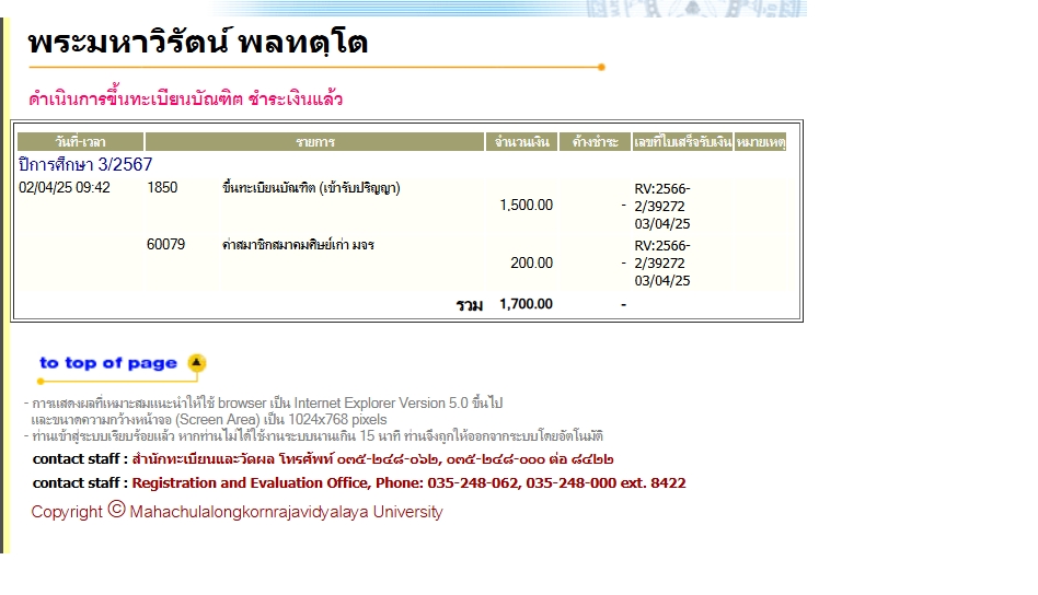 * เข้าพิธีประสาทปริญญาวันที่ 6 ธันวาคม 2568