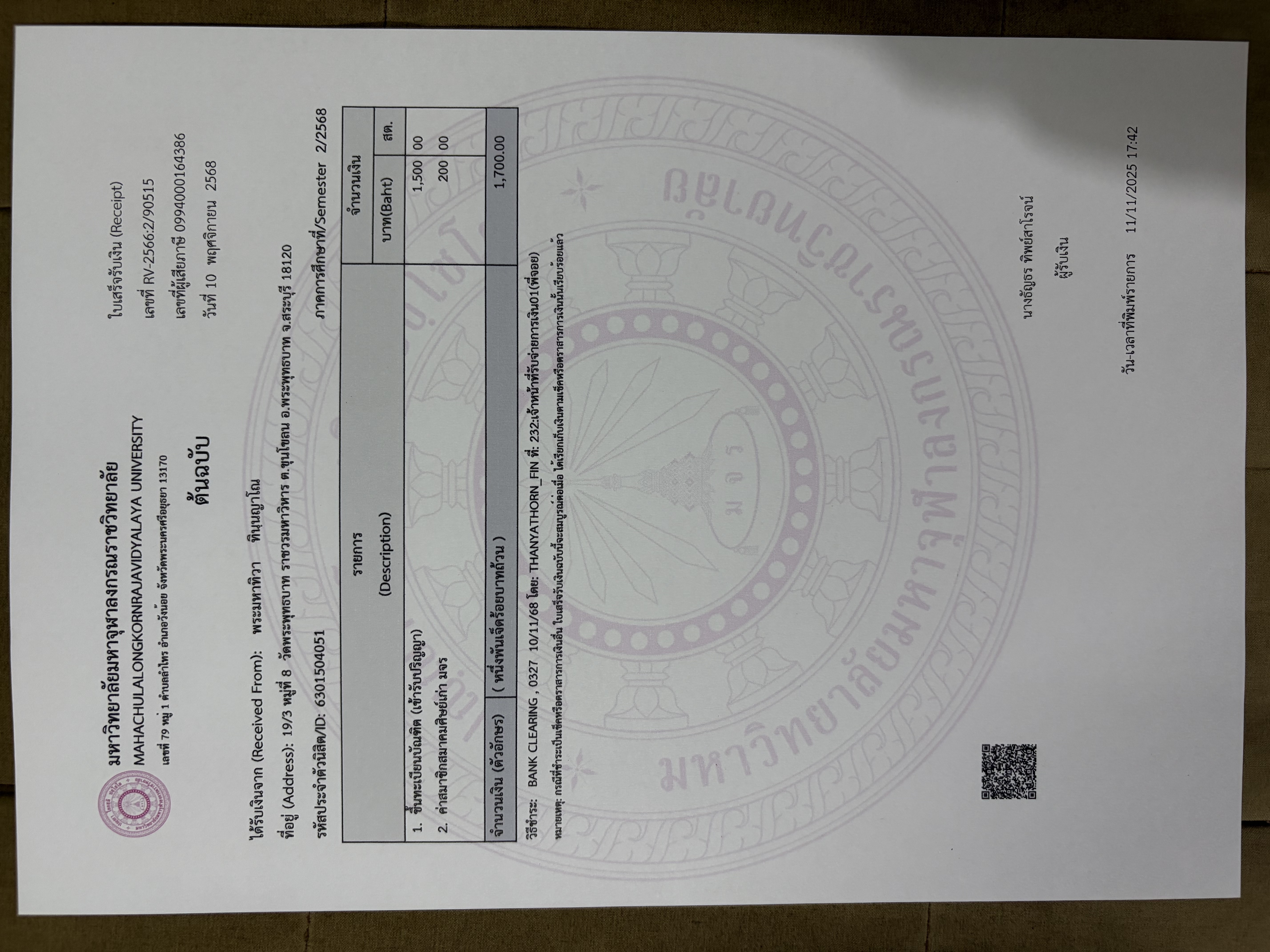 สถานะเข้าพิธีประสาทปริญญา : บรรพชิต ระดับ : ปริญญาตรี สังกัดคณะ: คณะสังคมศาสตร์ สาขาวิชา: รัฐประศาสนศาสตรบัณฑิต