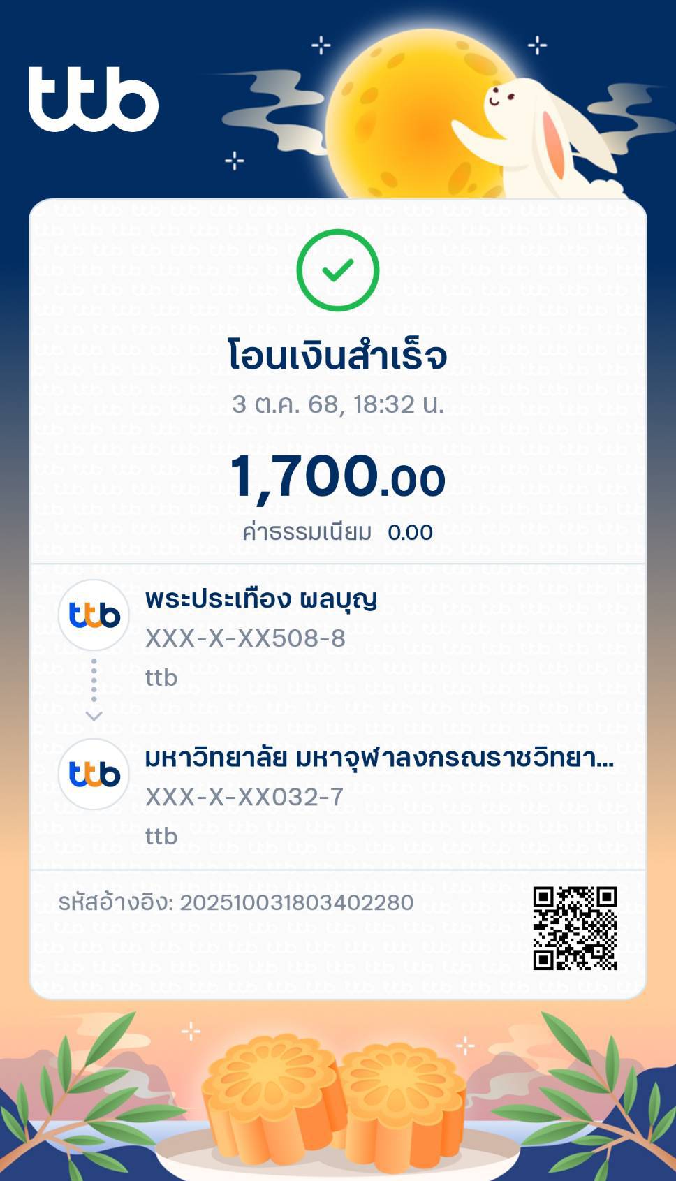 QR Code สำหรับสแกนเข้าร่วมพิธี * เข้าพิธีประสาทปริญญาวันที่ 6 ธันวาคม 2568 |