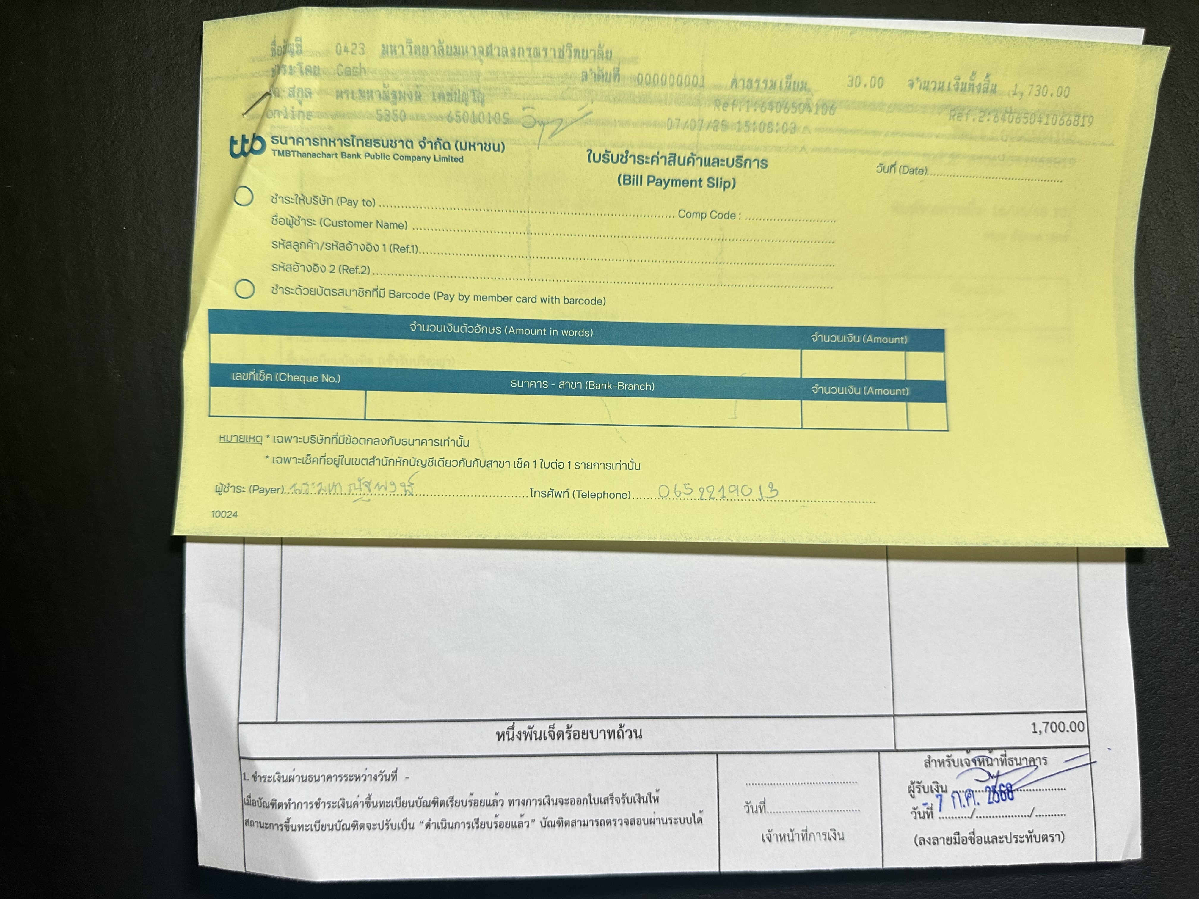 ใบเสร็จรับเงิน/เอกสารยืนยันการชำระเงิน(แนบเอกสาร)