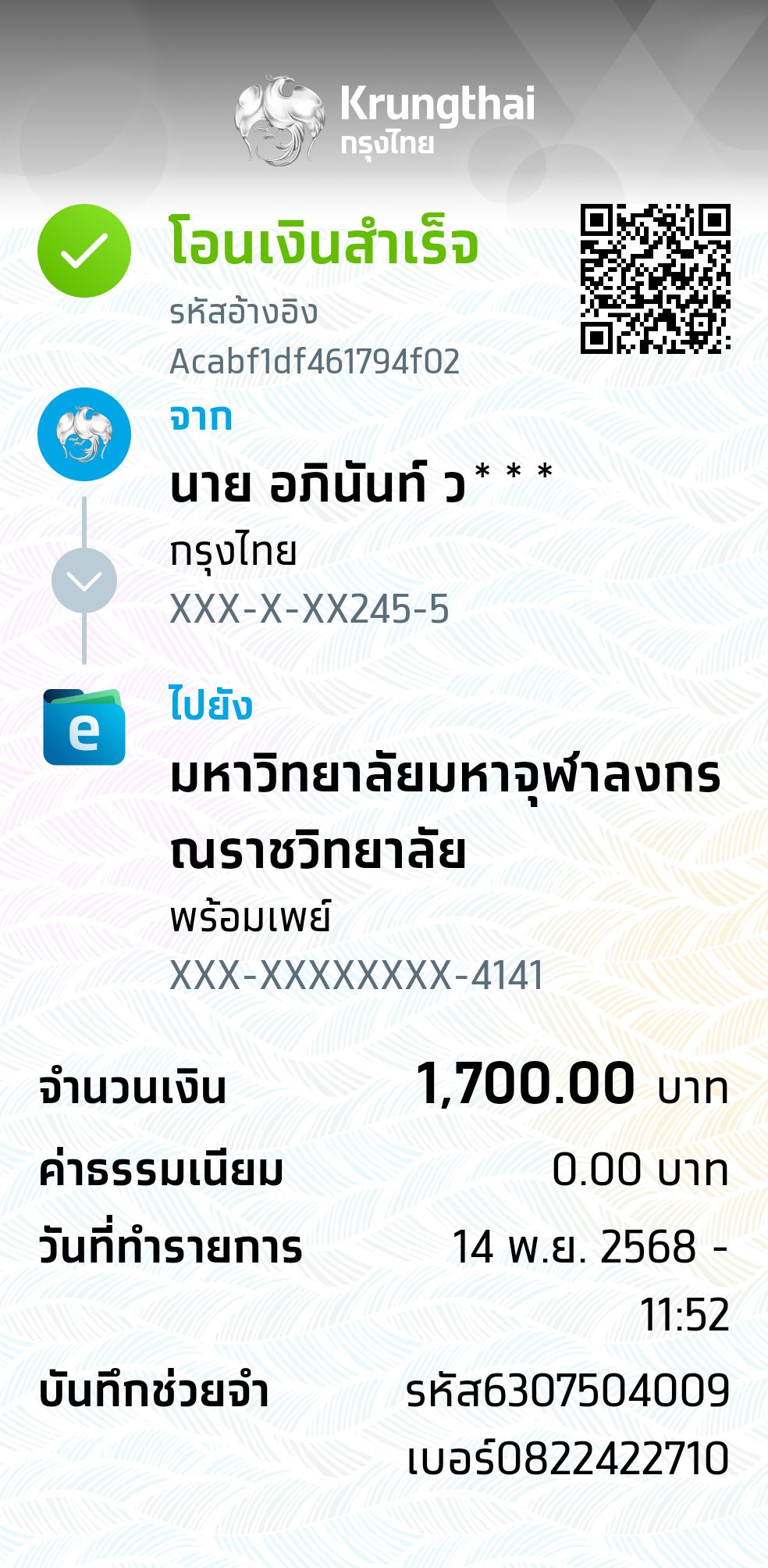 QR Code สำหรับสแกนเข้าร่วมพิธี * เข้าพิธีประสาทปริญญาวันที่ 6 ธันวาคม 2568 |