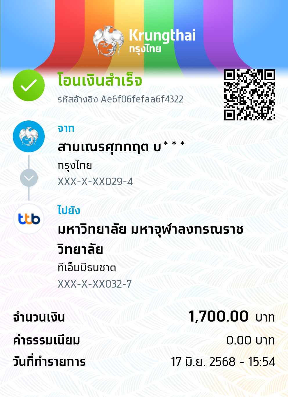 * เข้าพิธีประสาทปริญญาวันที่ 6 ธันวาคม 2568
