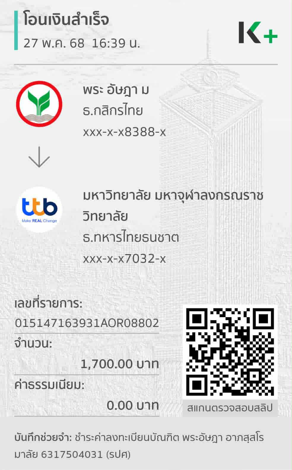 ใบเสร็จรับเงิน/เอกสารยืนยันการชำระเงิน(แนบเอกสาร)