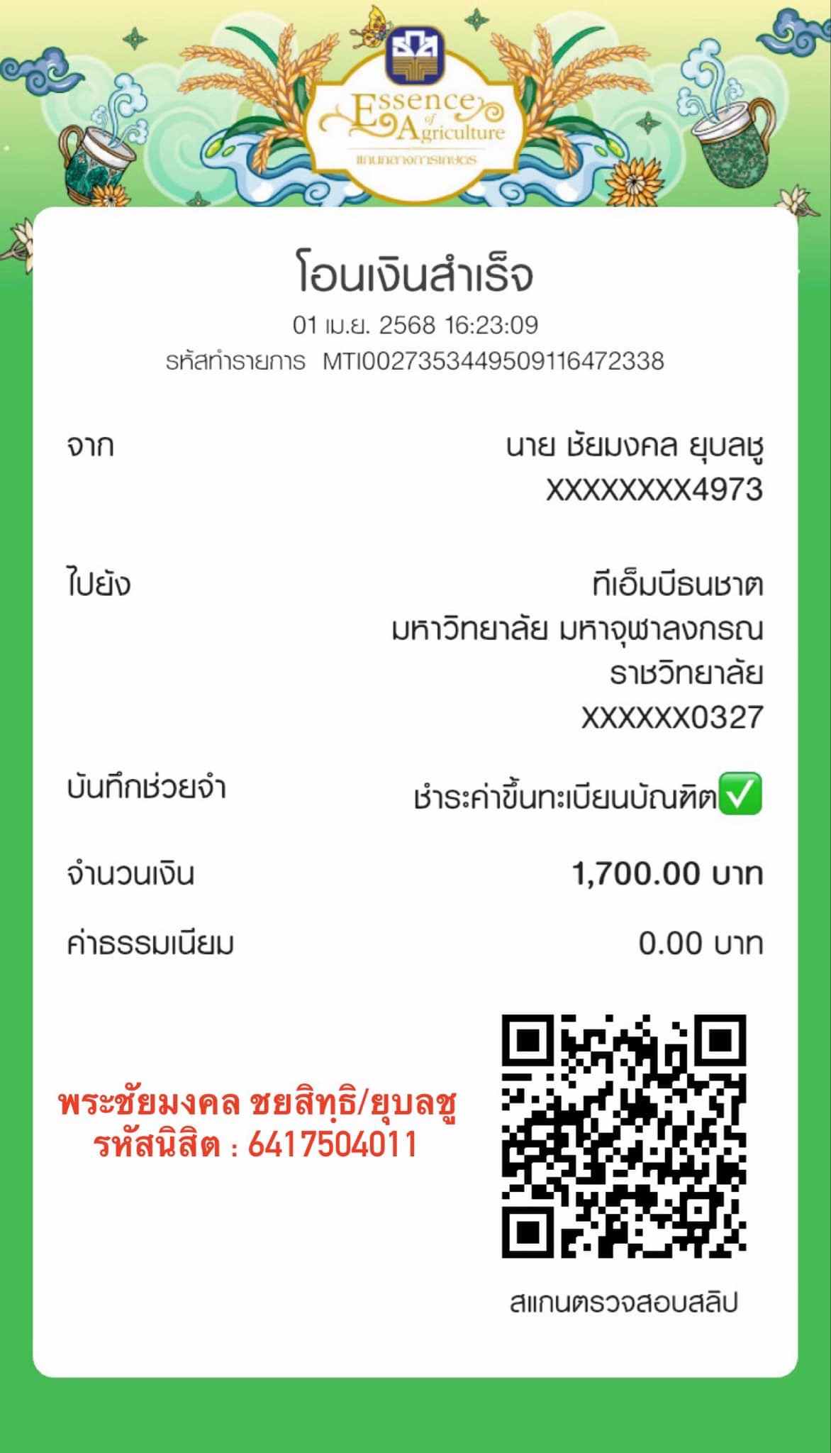 | รหัสนิสิต : 6417504011 | ชื่อ : พระชัยมงคล | ฉายา: ชยสิทฺธิ | นามสกุล: ยุบลชู |