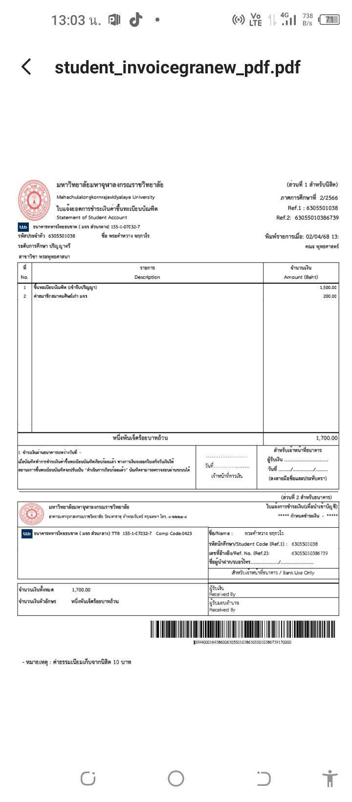| รหัสนิสิต : 6305501038 | ชื่อ : พระคำหวาง | ฉายา: จกฺกวโร | นามสกุล: ผาละขันธุ์ |