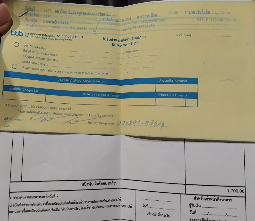 ใบเสร็จรับเงิน/เอกสารยืนยันการชำระเงิน(แนบเอกสาร)