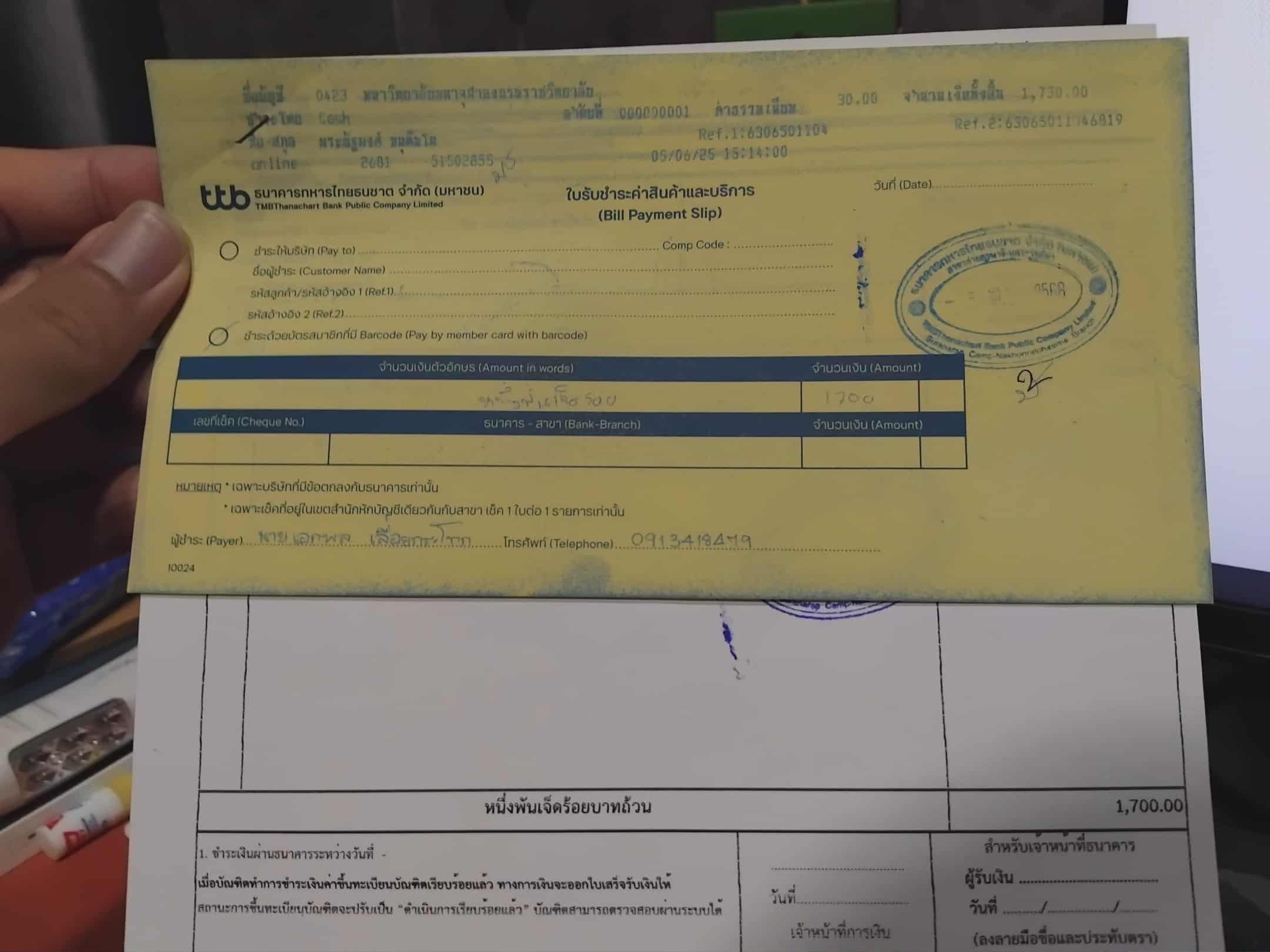 ใบเสร็จรับเงิน/เอกสารยืนยันการชำระเงิน(แนบเอกสาร)