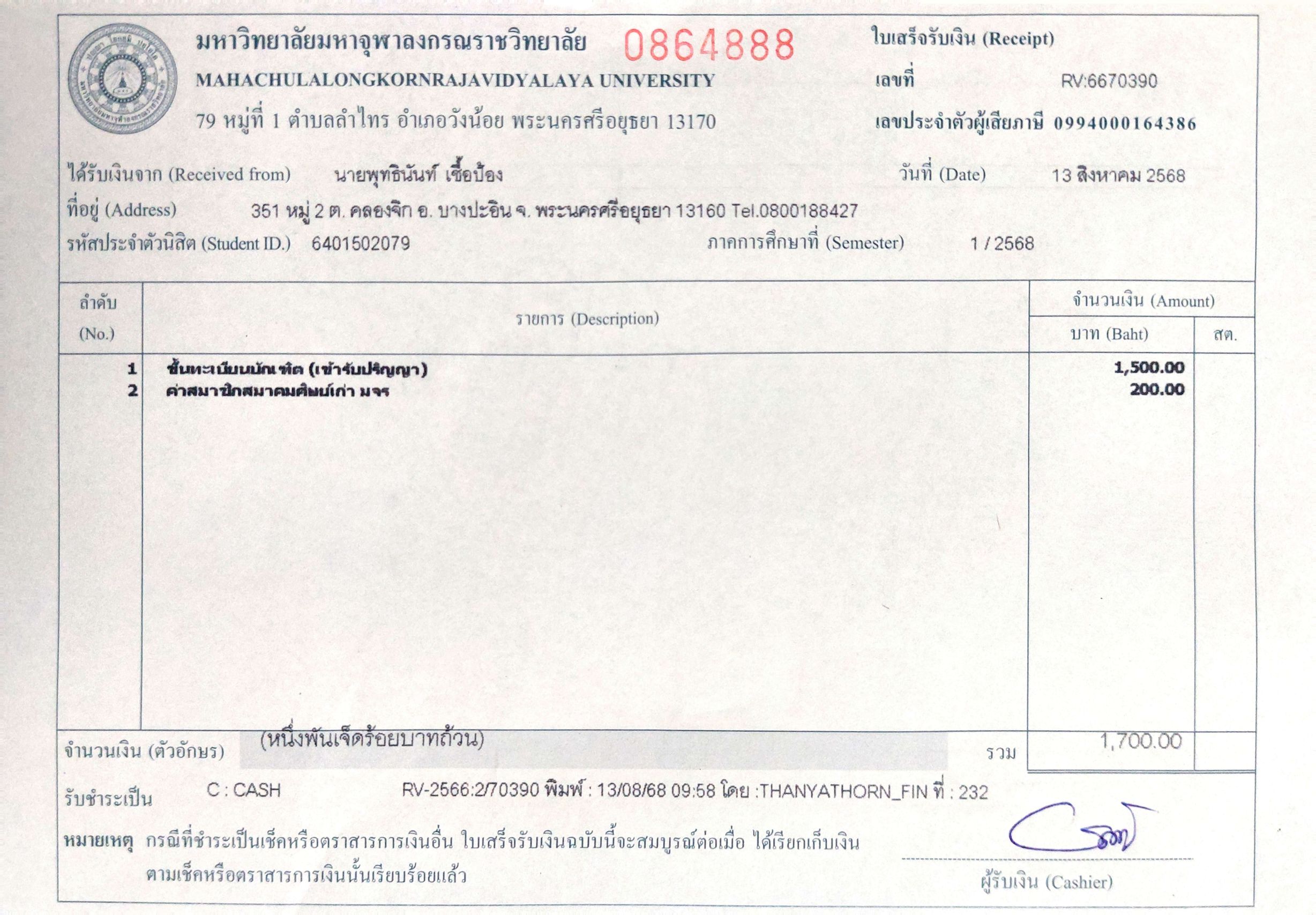 | รหัสนิสิต : 6401502079 | ชื่อ : นายพุทธินันท์ | ฉายา: - | นามสกุล: เชื้อป้อง |