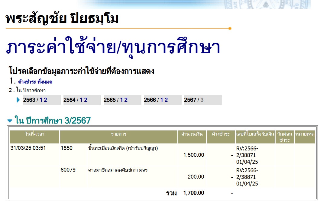 | สถานะเข้าพิธีประสาทปริญญา : บรรพชิต | ระดับ : ปริญญาตรี | สังกัดคณะ: คณะพุทธศาสตร์ | สาขาวิชา: พระพุทธศาสนา |