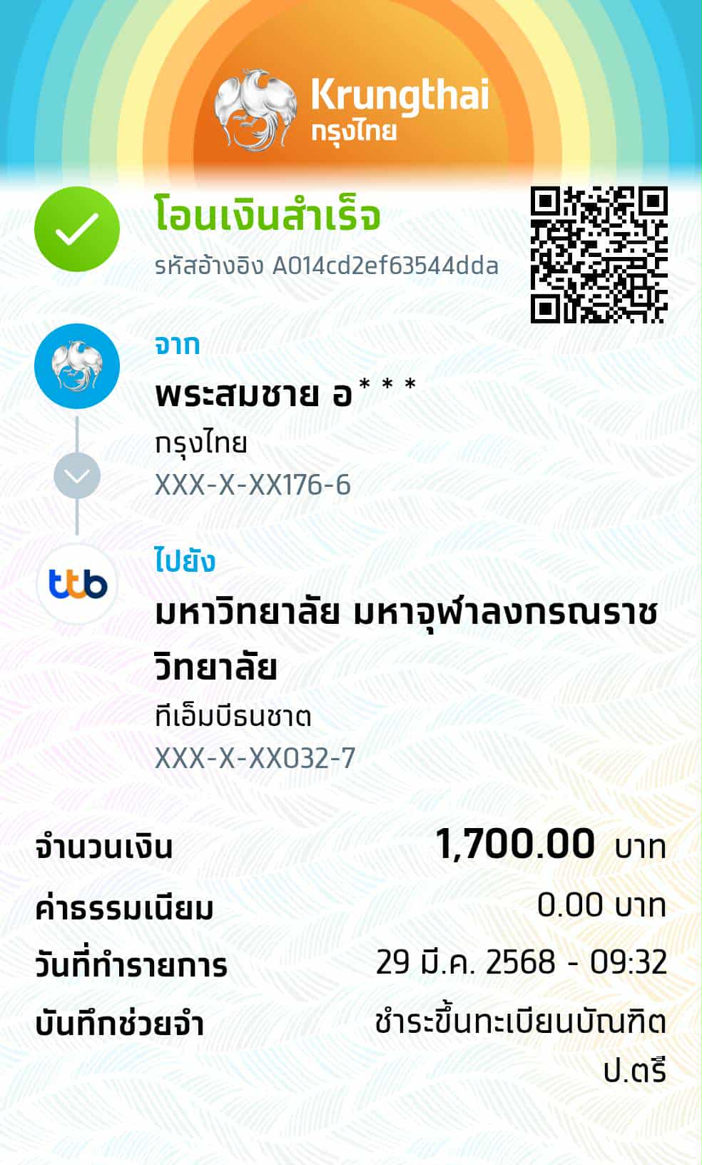 * เข้าพิธีประสาทปริญญาวันที่ 6 ธันวาคม 2568