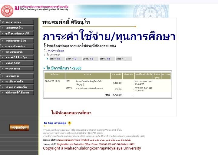สถานะเข้าพิธีประสาทปริญญา : บรรพชิต ระดับ : ปริญญาตรี สังกัดคณะ: คณะพุทธศาสตร์ สาขาวิชา: พระพุทธศาสนา