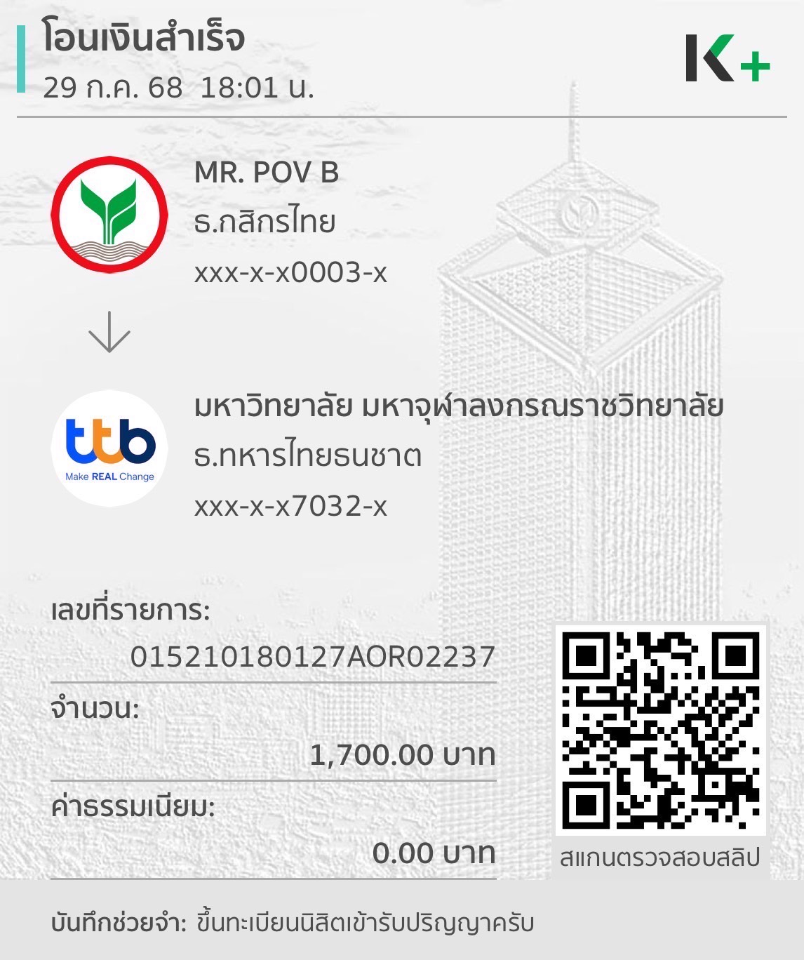 QR Code สำหรับสแกนเข้าร่วมพิธี * เข้าพิธีประสาทปริญญาวันที่ 6 ธันวาคม 2568 |