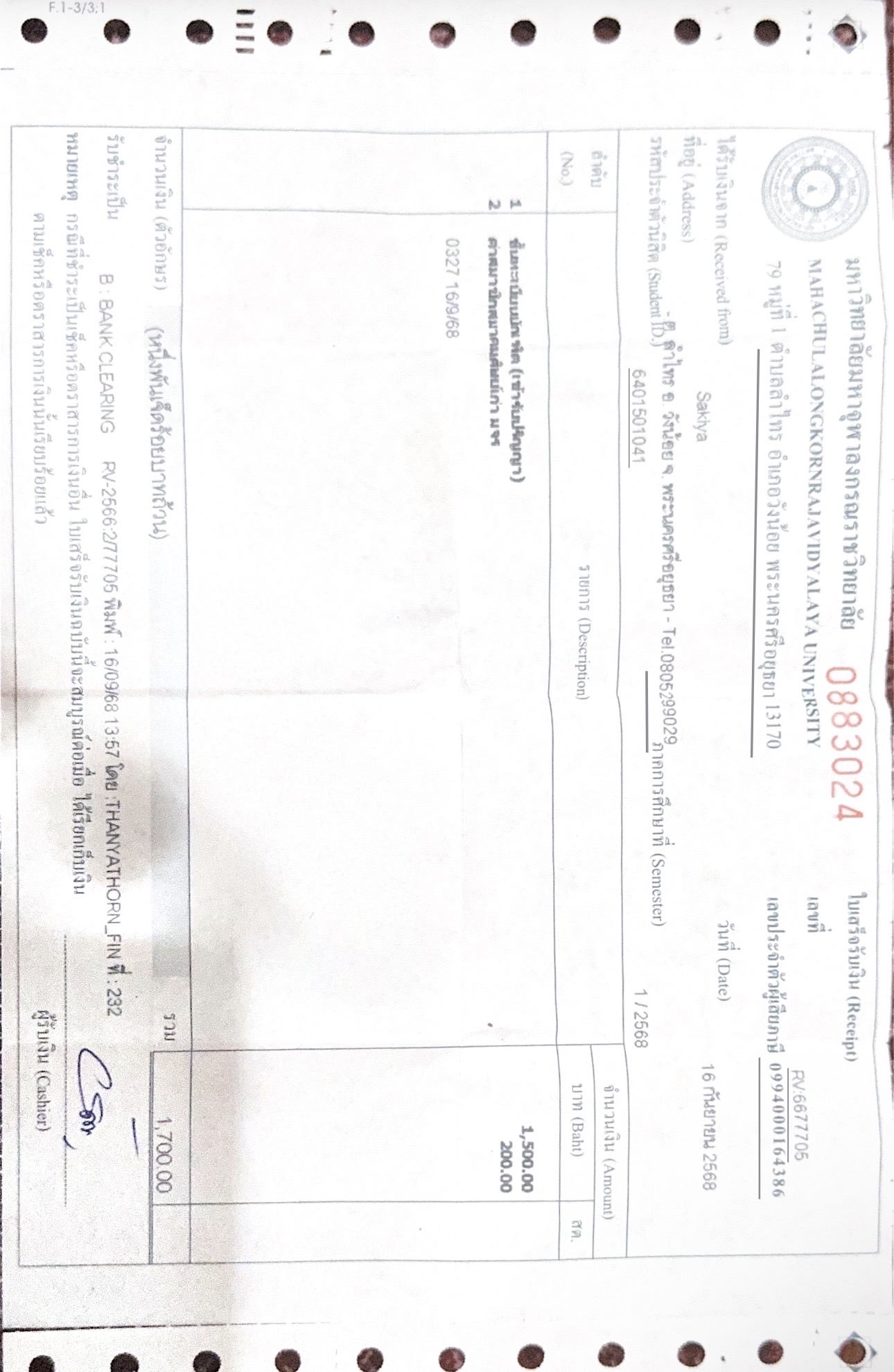 ใบเสร็จรับเงิน/เอกสารยืนยันการชำระเงิน(แนบเอกสาร)