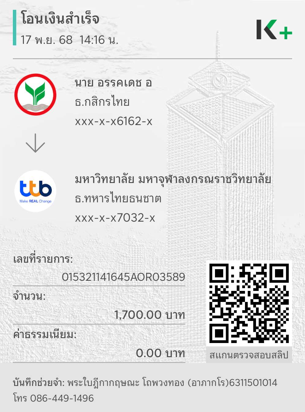 QR Code สำหรับสแกนเข้าร่วมพิธี * เข้าพิธีประสาทปริญญาวันที่ 6 ธันวาคม 2568 |