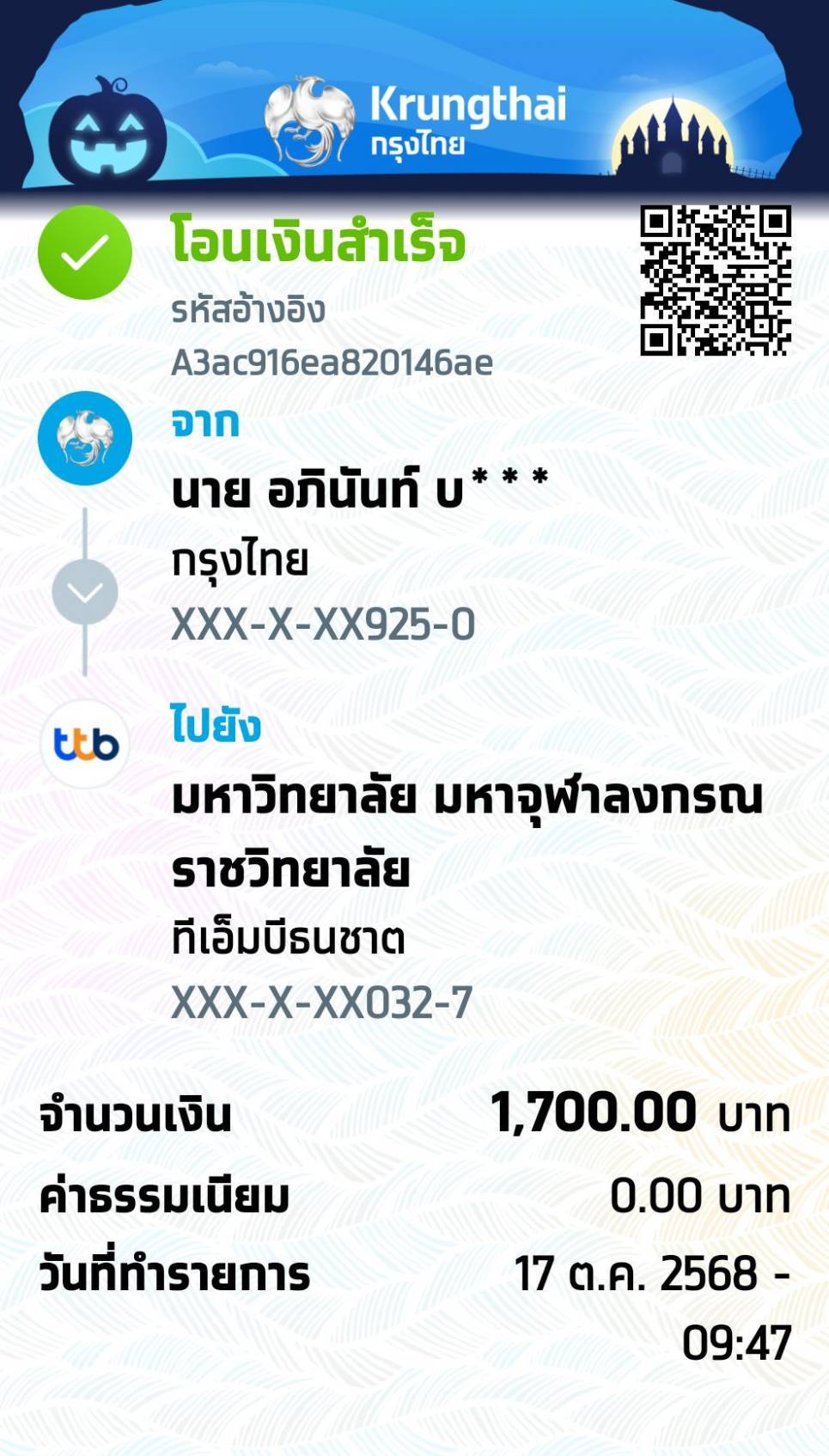 QR Code สำหรับสแกนเข้าร่วมพิธี * เข้าพิธีประสาทปริญญาวันที่ 6 ธันวาคม 2568 |