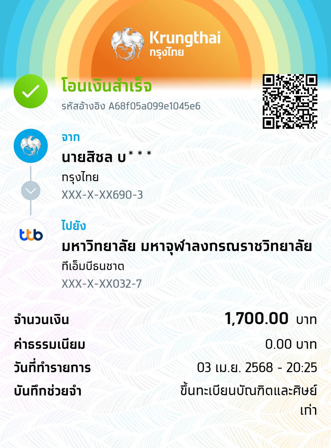 * เข้าพิธีประสาทปริญญาวันที่ 6 ธันวาคม 2568
