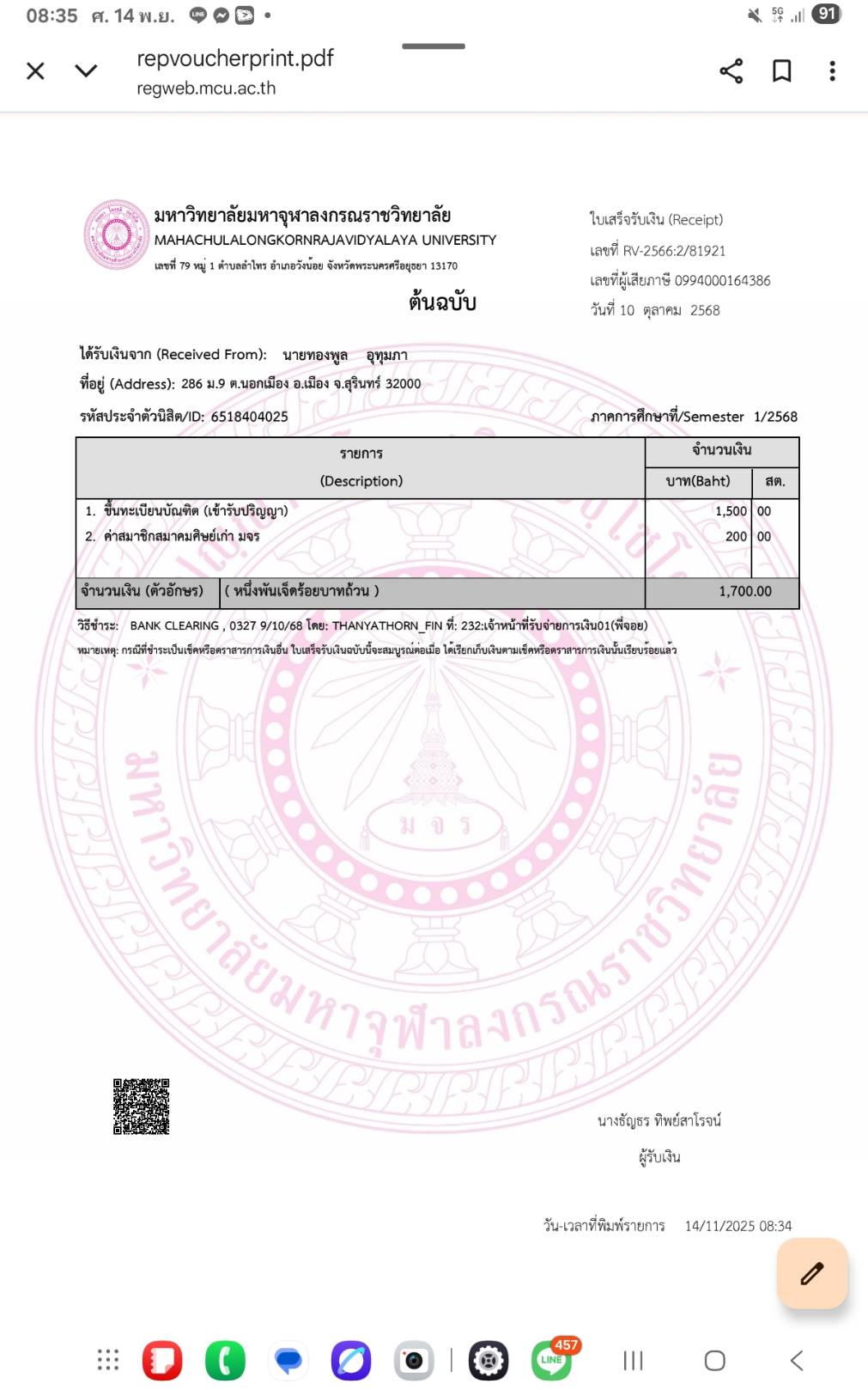 | รหัสนิสิต : 6518404025 | ชื่อ : นายทองพูล | ฉายา: - | นามสกุล: อุทุมภา |