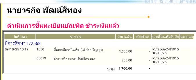 | รหัสนิสิต : 6425504022 | ชื่อ : นายวรกิจ | ฉายา: - | นามสกุล: พัฒน์สีทอง |