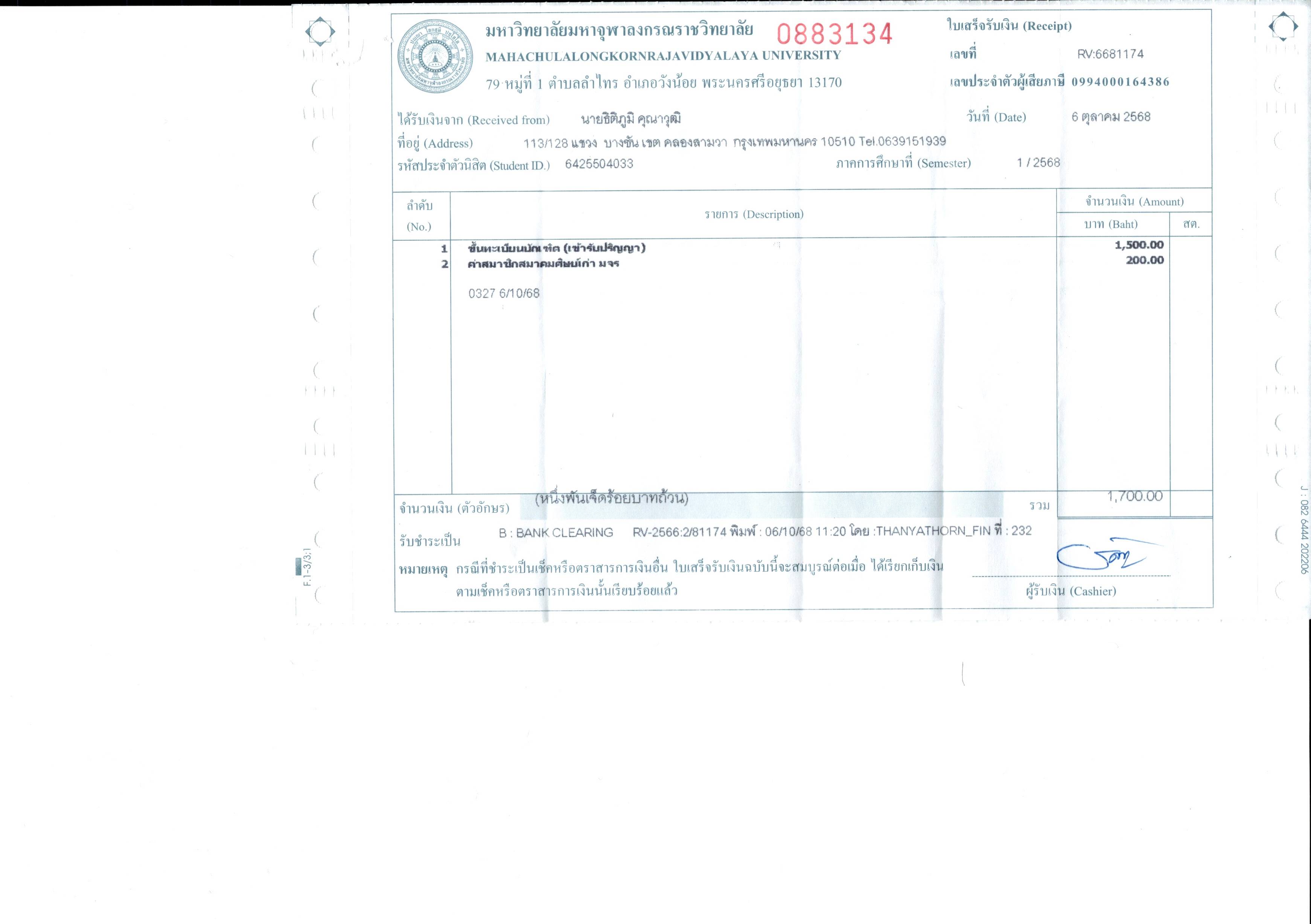 | รหัสนิสิต : 6425504033 | ชื่อ : นายธิติภูมิ | ฉายา: - | นามสกุล: คุณาวุฒิ |