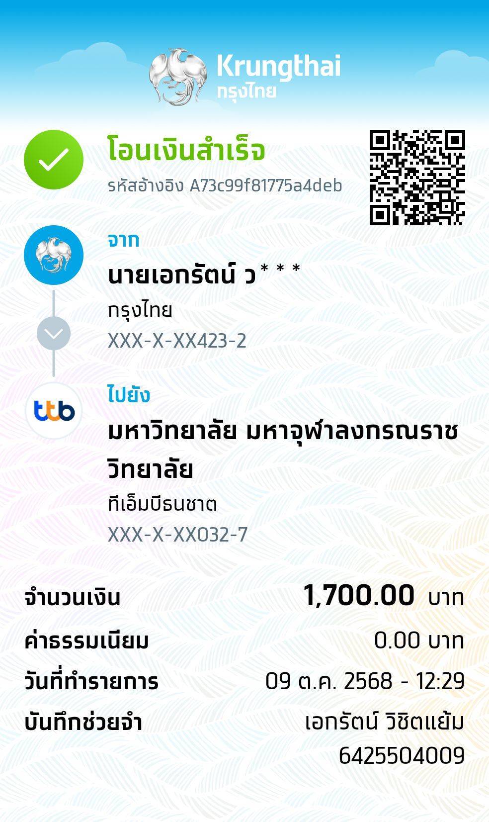 QR Code สำหรับสแกนเข้าร่วมพิธี * เข้าพิธีประสาทปริญญาวันที่ 6 ธันวาคม 2568 |