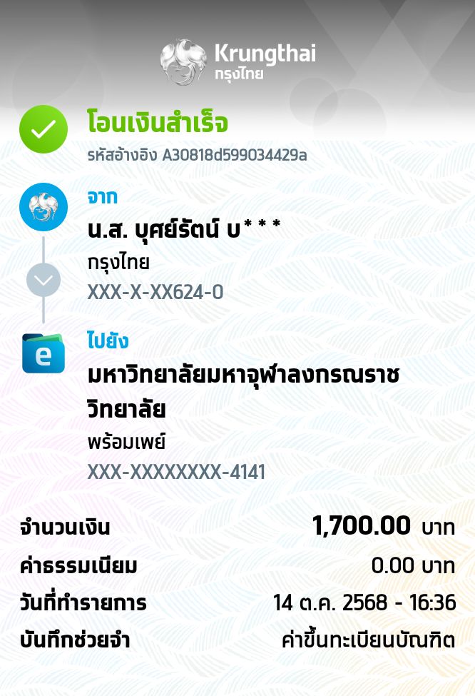 * เข้าพิธีประสาทปริญญาวันที่ 6 ธันวาคม 2568