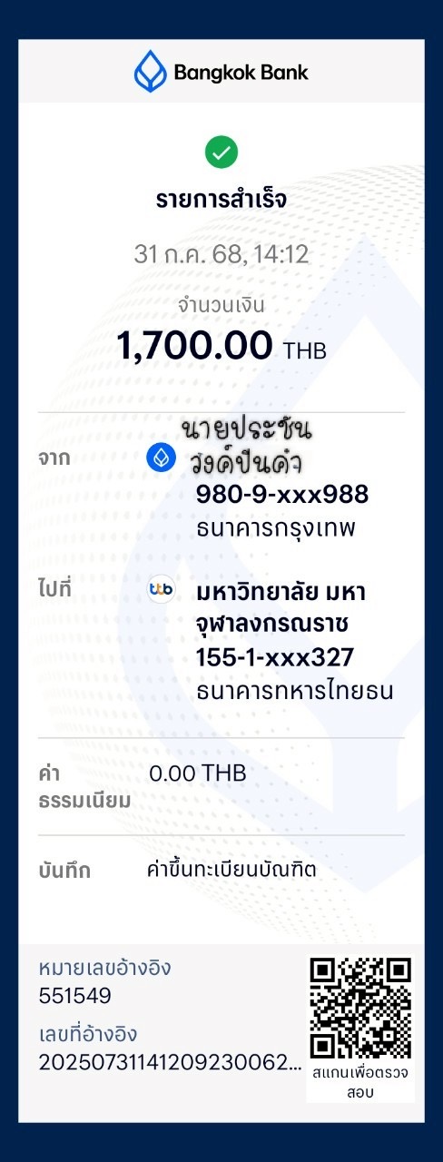 QR Code สำหรับสแกนเข้าร่วมพิธี * เข้าพิธีประสาทปริญญาวันที่ 6 ธันวาคม 2568 |