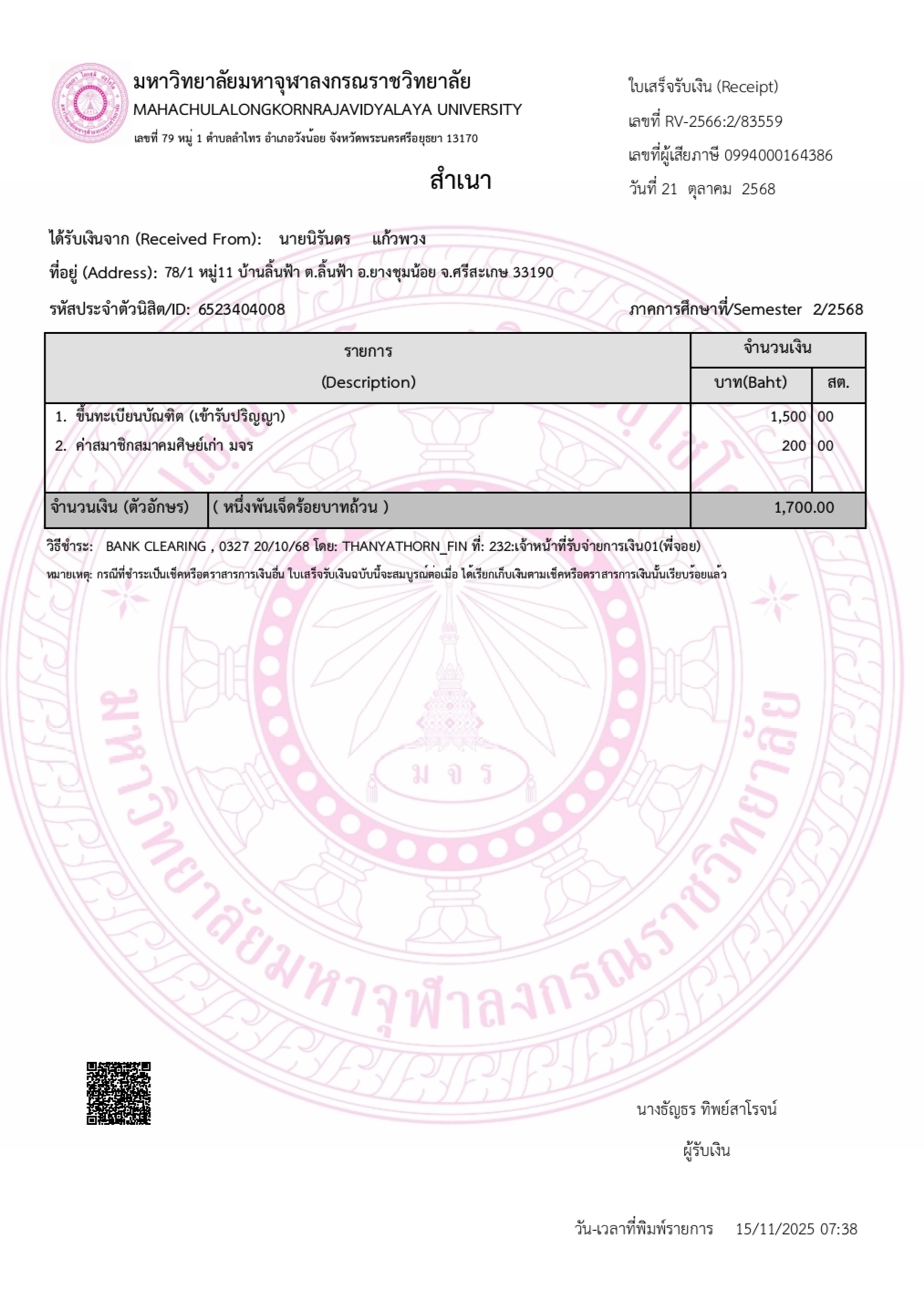 * เข้าพิธีประสาทปริญญาวันที่ 6 ธันวาคม 2568