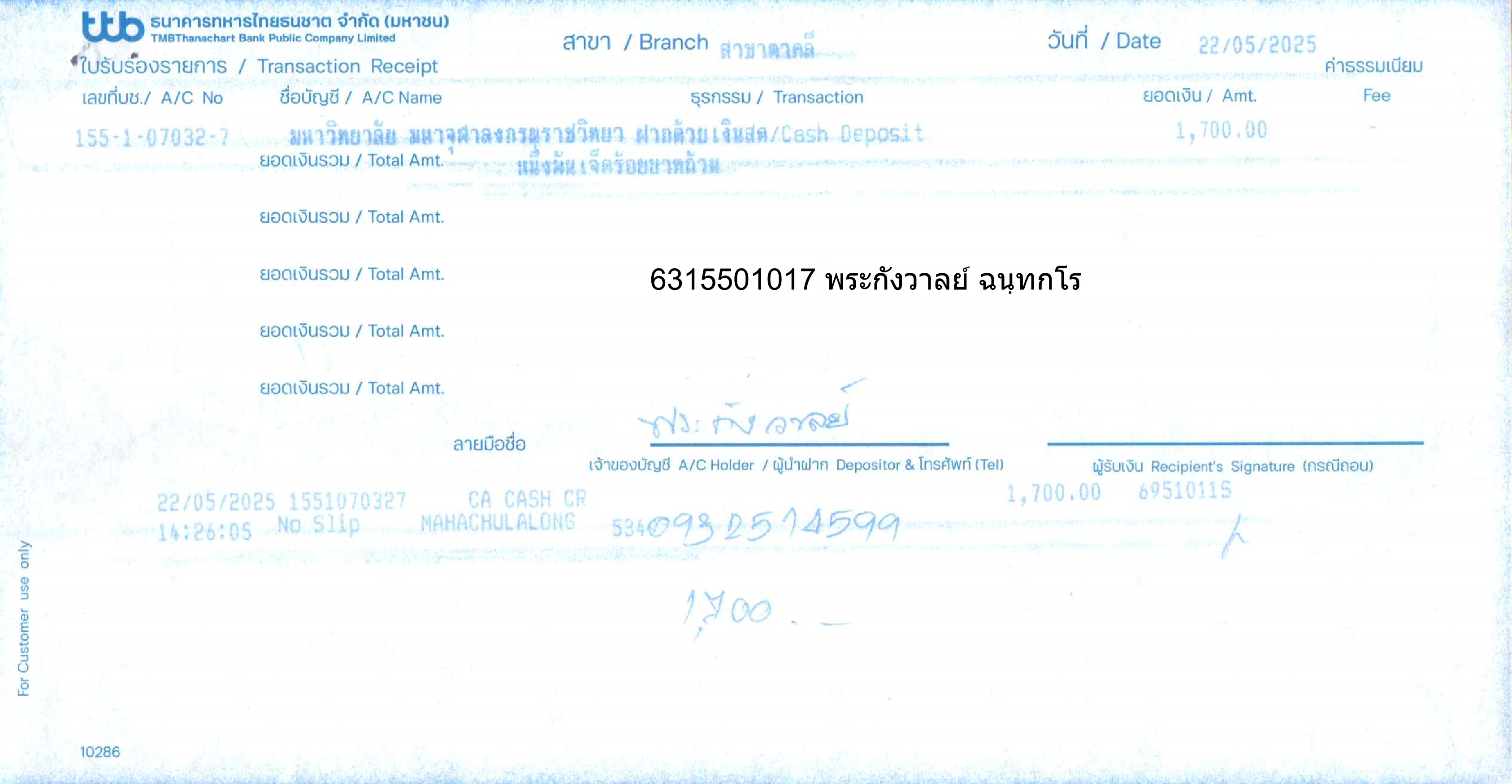 | รหัสนิสิต : 6315501017 | ชื่อ : พระกังวาลย์ | ฉายา: ฉนฺทกโร | นามสกุล: สระน้อย |
