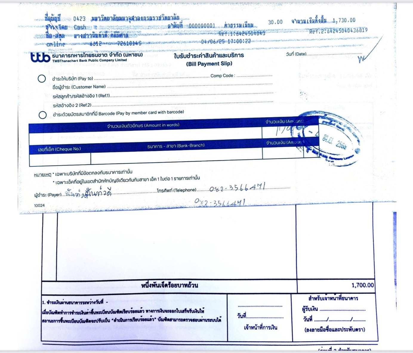 ใบเสร็จรับเงิน/เอกสารยืนยันการชำระเงิน(แนบเอกสาร)