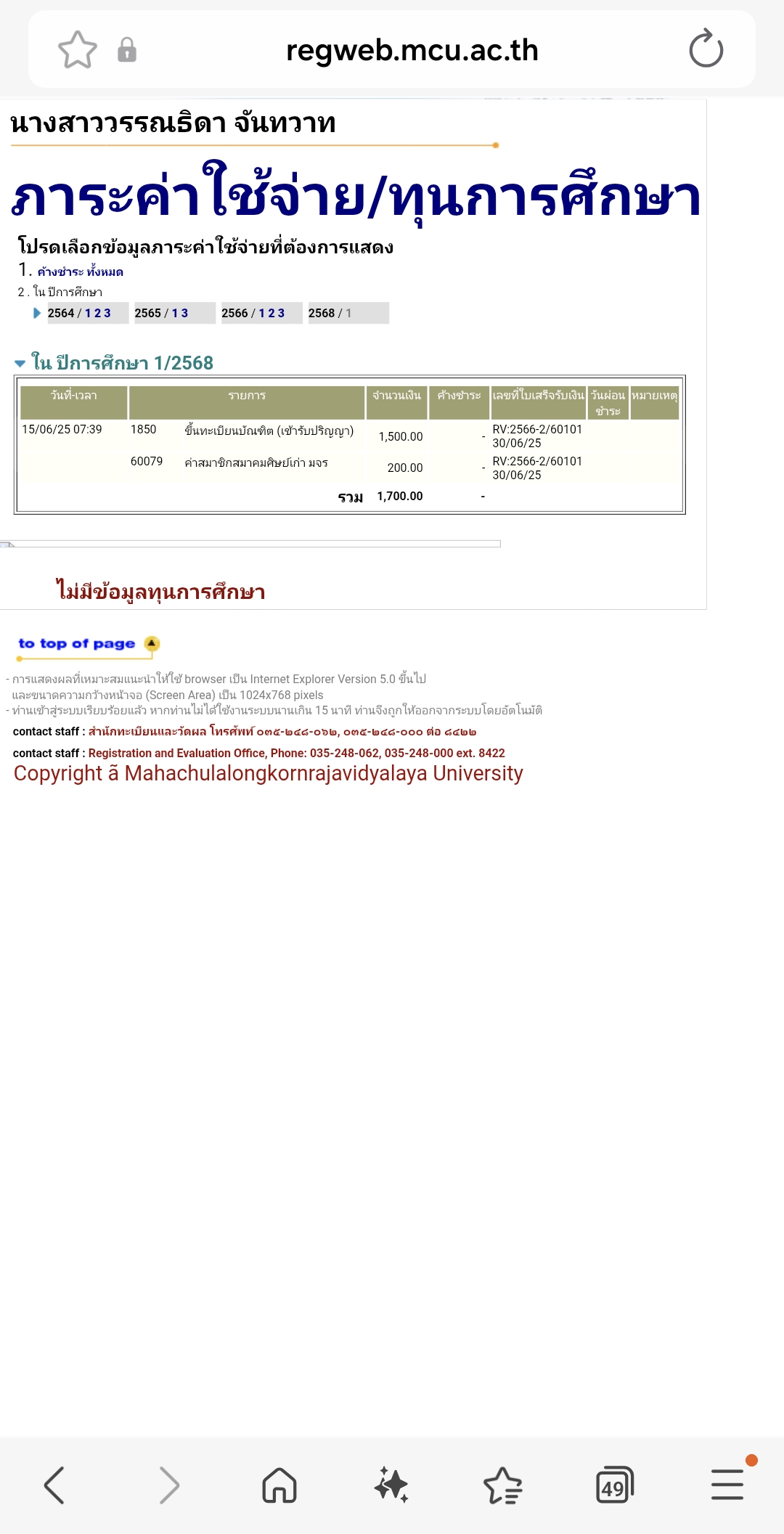 | รหัสนิสิต : 6424504059 | ชื่อ : นางสาววรรณธิดา | ฉายา: - | นามสกุล: จันทวาท |