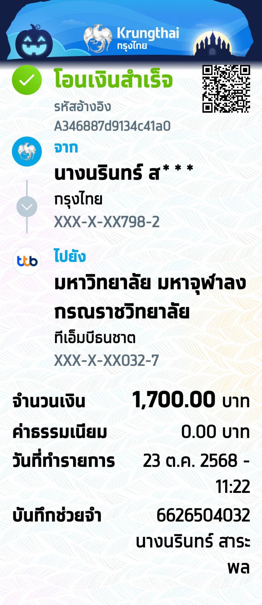 QR Code สำหรับสแกนเข้าร่วมพิธี * เข้าพิธีประสาทปริญญาวันที่ 6 ธันวาคม 2568 |