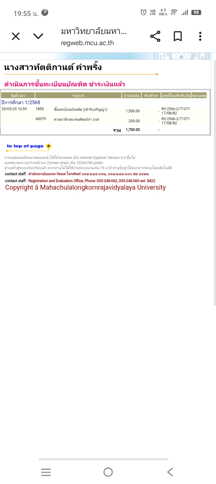 | รหัสนิสิต : 6430504044 | ชื่อ : นางสาวทัตติกานต์ | ฉายา: - | นามสกุล: คำพริ้ง |