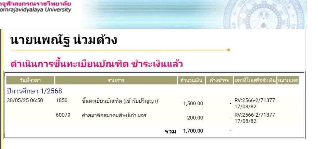 | สถานะเข้าพิธีประสาทปริญญา : คฤหัสถ์ | ระดับ : ปริญญาตรี | สังกัดคณะ: คณะสังคมศาสตร์ | สาขาวิชา: รัฐศาสตรบัณฑิต |